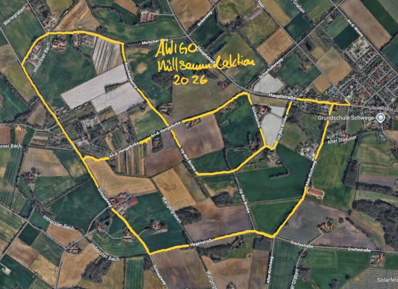Die AWIGO rief am Wochenende des 21.02.2026 und 22.02.2026 zum gemeinsamen Abfall sammeln im Landkreis Osnabrück auf. Wir als Ortsverband waren im Glandorfer Ortsteil Schwege dabei.